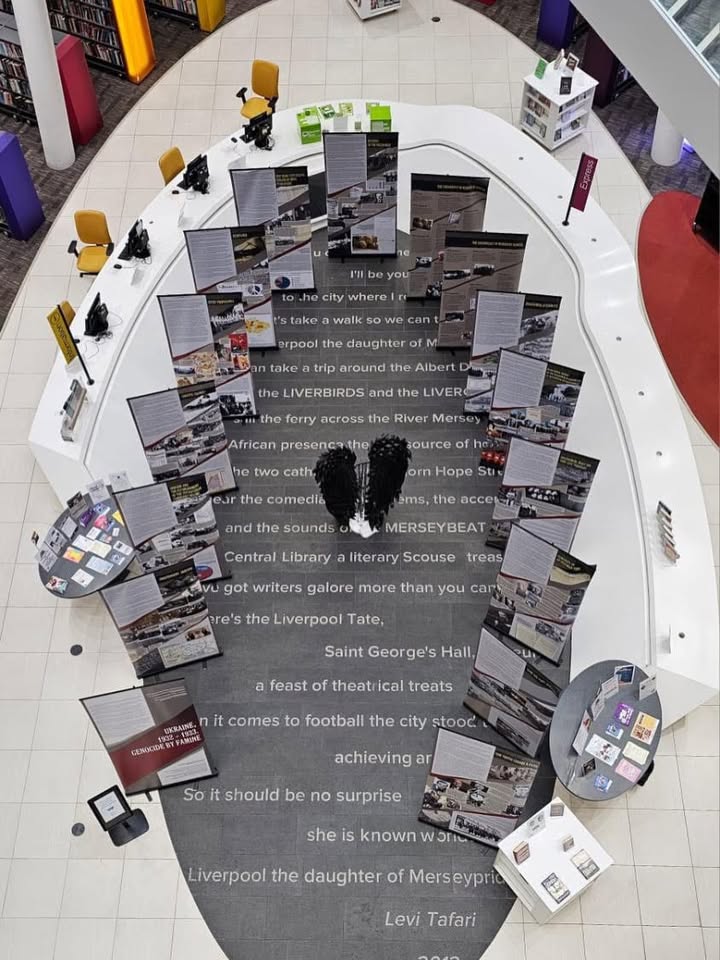 Winter Garden, Sheffield. A social art project commemorating children killed during Russia's invasion of Ukraine. Over 100 handcrafted epoxy resin angels. Supported by AUGB Sheffield and Rotary District 1220.